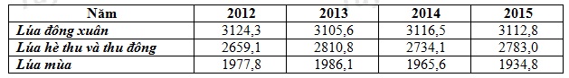 Cho bảng số liệu DIỆN TÍCH LÚA CẢ NĂM CỦA NƯỚC TA, GIAI ĐOẠN 2012-2015. (Đơn vị: nghìn