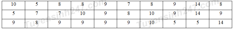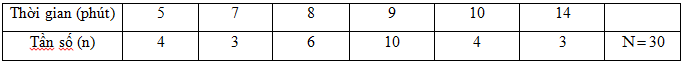 Thời gian làm một bài toán (tính bằng phút) của 30 học sinh được ghi lại như sau:
