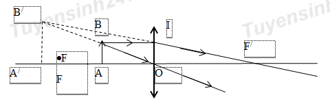 Một vật sáng AB đặt vuông góc với trục chính của một thấu kính hội tụ, cách thấu kính một khoảng d =12cm, tiêu cự của thấu kính f = 20cm.
