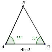 Tam giác \(ABC\) có các số đo như trong hình 2, ta