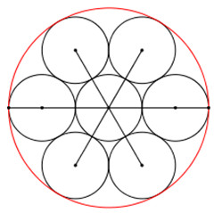 Người ta xếp bảy viên bi là các khối cầu có cùng bán kính R vào một cái lọ hình trụ. Biết rằng các viên bi đều tiếp xúc với hai đáy, viên bi nằm chính giữa tiếp xúc với sáu viên bi xung quanh và mỗi viên bi xung quanh đều tiếp xúc với các đường sinh của lọ hình trụ. Tính theo R thể tích lượng nước cần dùng để đổ đầy vào lọ sau khi đã xếp bi.