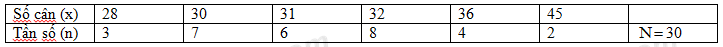 Số cân nặng của học sinh (tính tròn đến kg) trong một lớp được ghi lại như sau: