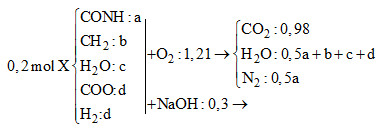 Như vậy ta quy đổi hỗn hợp peptit và este thành: CONH, CH2, H2O, COO, H2