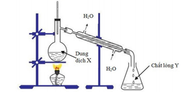Hình vẽ sau đây mô tả thí nghiệm điều chế chất lỏng Y từ dung dịch X: Trong thí nghiệm