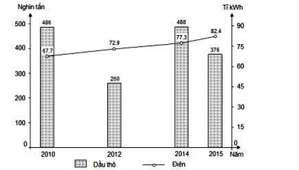 Cho biểu đồ về dầu thô và điện của Phi-lip-pin, giai đoạn 2010 - 2015: