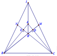 d) Gọi I là giao điểm của BN và CM, ta chứng minh AH cũng đi qua điểm I. Suy ra, ba đường thẳng BN;AH;CM đồng quy tại 1 điểm (điểm I).