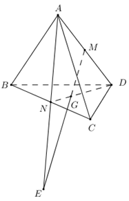 Cho tứ diện \(ABCD.\) Gọi \(M,{\rm N}\) lần lượt là trung điểm các cạnh \(AD,BC;\,G\) là trọng