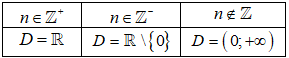 Hàm số lũy thừa \(y = {x^n}\) có TXĐ phụ thuộc vào \(n\) như sau: