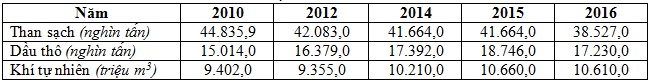 SẢN LƯỢNG THAN SẠCH, DẦU THÔ VÀ KHÍ TỰ NHIÊN CỦA NƯỚC TA