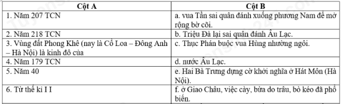 Dựa vào thời gian diễn ra các sự kiện để nối cột.