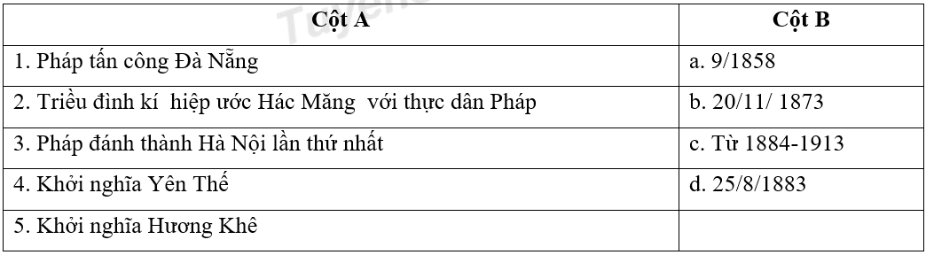 Dự vào thời gian diễn ra các sự kiện để nối cột.