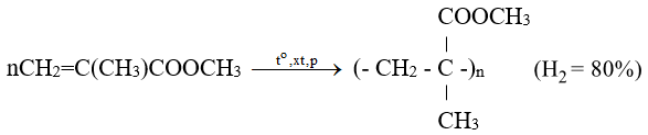 Tổng hợp 120 kg poli(metyl metacrylat) từ axit và ancol thích hợp, hiệu suất của phản ứng este hóa là 30% và phản ứng trùng hợp là 80%. Khối lượng của axit cần dùng là