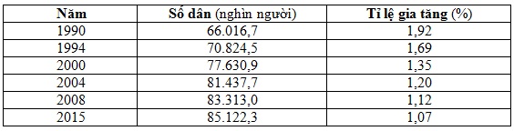 QUY MÔ DÂN SỐ VÀ TỈ LỆ GIA TĂNG DÂN SỐ NƯỚC TA