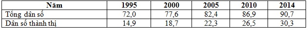 DÂN SỐ VÀ DÂN SỐ THÀNH THỊ NƯỚC TA, GIAI ĐOẠN 1995 – 2014