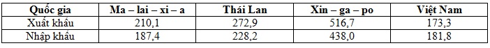 Cho bảng số liệu: XUẤT KHẨU, NHẬP KHẨU HÀNG HÓA VÀ DỊCH VỤ CỦA MỘT SỐ QUỐC GIA 2015 (Đơn