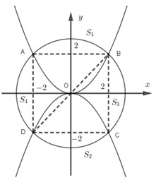 + \({S_1}\) là phần diện tích giới hạn bởi parabol; đường tròn và hai đường thẳng \(x = 2;x = - 2\). Từ đó sử dụng công thức diện tích hình phẳng bằng ứng dụng tích phân để tính \({S_1}.\)