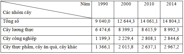 Cho bảng số liệu: DIỆN TÍCH GIAO TRỒNG PHÂN THEO NHÓM CÂY CỦA NƯỚC TA QUA CÁC NĂM (Đơn vị: