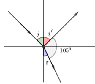 Một tia sáng chiếu từ không khí tới mặt thoáng của một chất lỏng với góc tới bằng 45° thì cho tia phản xạ hợp với tia khúc xạ một góc 105°. Góc khúc xạ bằng