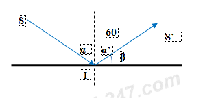 Chiếu một tia tới lên gương phẳng. Biết góc tới a = 600, tìm góc b tạo bởi tia phản xạ và
