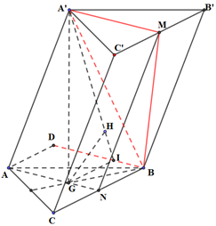 Cho lăng trụ tam giác ABC.A’B’C’ có đáy là tam giác đều cạnh a. Hình chiếu của A’ lên mặt phẳng (ABC) trùng với trọng tâm của tam giác ABC, AA’ = 2a. M là trung điểm của B’C’. Khi đó khoảng cách từ C’ đến mặt phẳng (A’BM) là: