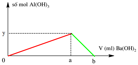 Rót từ từ dung dịch Ba(OH)2 0,2M vào 150 ml dung dịch AlCl3 0,04M thấy lượng kết tủa phụ thuộc vào số ml dung dịch Ba(OH)2 theo đồ thị dưới đây.