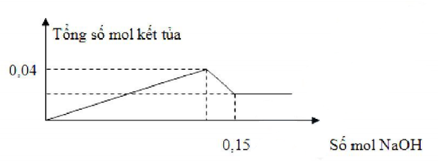 Từ 0,15 mol NaOH thì số mol kết tủa không đổi →Tại đó Al(OH)3 tan hết tạo NaAlO2