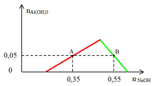 Từ đồ thị ta thấy tại điểm A: khi nNaOH = 0,35 mol: kết tủa chưa đạt cực đại