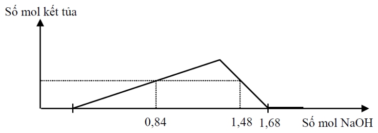 Khi nOH- = 1,68 mol: Kết tủa bị hòa tan hoàn toàn: nOH- = nH+ + 4.nAl3+