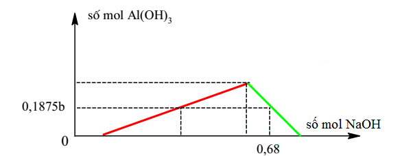 Khi nNaOH = 0,68 mol: kết tủa bị hòa tan một phần: