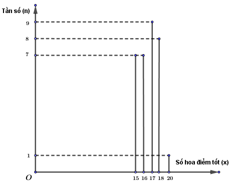 c) Vẽ biểu đồ đoạn thẳng. (Trục hoành biểu diễn số hoa điểm tốt, trục tung biểu diễn tần số).