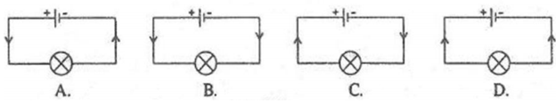 Mũi tên trong sơ đồ mạch điện nào dưới đây chỉ đúng chiều quy ước của dòng điện?
