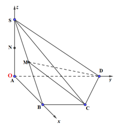 Cho hình chóp S.ABCD có đáy ABCD là hình thang vuông tại A và B. Biết \(AB = BC = a\), \(AD = 2a,\,\)\(SA