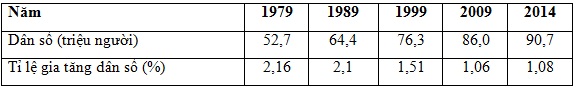 Cho bảng số liệu: DÂN SỐ VÀ TỈ LỆ GIA TĂNG DÂN SỐ TỰ NHIÊN CỦA NƯỚC TA GIAI ĐOẠN 1979 –
