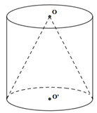 Một hình trụ có chiều cao h và bán kính đáy R. Hình nón có đỉnh là tâm đáy trên của hình