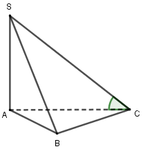 Cho hình chóp \(S.ABC\) có \(SA\) vuông góc với đáy \(ABC\). Tam giác \(ABC\) vuông cân tại \(B\) và \(SA = a\sqrt 2 ,SB = a\sqrt 5 \). Tính góc giữa \(SC\) và mặt phẳng \(\left( {ABC} \right)\).