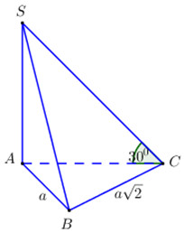 Cho hình chóp \(S.ABC\) có đáy \(ABC\) là tam giác vuông tại \(B\), \(AB = a,\,BC = a\sqrt 2 \) , đường