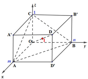 Trong không gian với hệ tọa độ Oxyz, cho m, n là hai số thực dương thỏa mãn \(m + 2n = 1\). Gọi