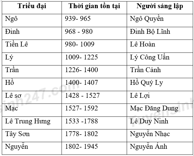 Dựa vào thời gian ra đời và tồn tại của các triều đại để sắp xếp.
