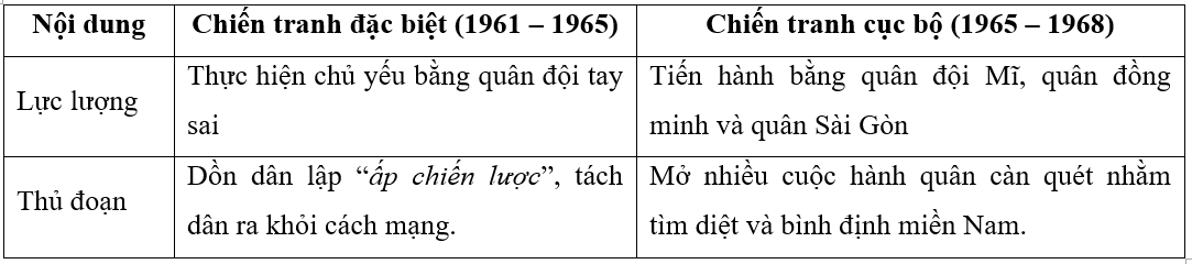 So sánh điểm giống nhau và khác nhau giữa chiến tranh đặc biệt và chiến tranh cục bộ của Mĩ