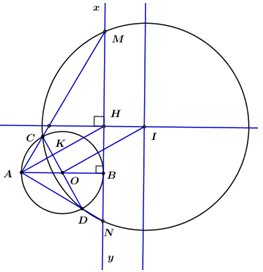 3) Chứng minh \(IH = OA = R\) mà \(IH \bot xy\) suy ra I cách xy một khoảng không đổi R.