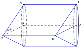 4. Khi góc AHB bằng 600. Tính diện tích xung quanh của hình trụ tạo thành khi hình bình hành AHOI quay quanh cạnh AH theo R.