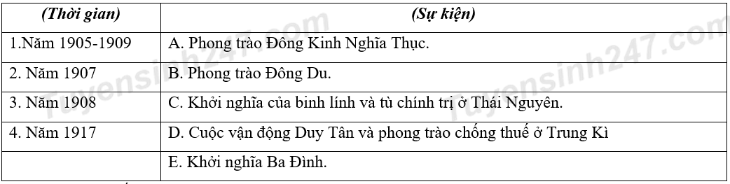 Hãy nối thời gian ở cột A với sự kiện cột B