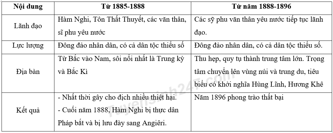 Tóm lược 2 giai đoạn phát triển của phong trào Cần vương? Vì sao sau khi vua Hàm Nghi bị bắt,