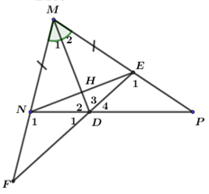 c) Gọi \(F\) là giao điểm của \(MN\) và \(DE.\) Chứng minh \(\Delta NFD = \Delta EPD\)