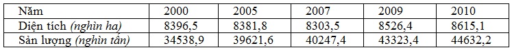 Dựa vào bảng số liệu: DIỆN TÍCH, SẢN LƯỢNG LƯƠNG THỰC CÓ HẠT CỦA NƯỚC TA GIAI ĐOẠN 2000