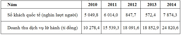 Cho bảng số liệu: SỐ KHÁCH QUỐC TẾ VÀ DOANH THU DỊCH VỤ LỮ HÀNH CỦA NƯỚC TA, GIAI ĐOẠN