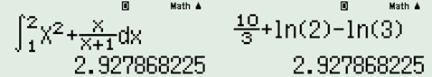 Tích phân \(I = \int\limits_1^2 {\left( {{x^2} + \dfrac{x}{{x + 1}}} \right)dx} \) có giá trị là :