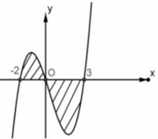 Cho đồ thị hàm số \(y = f\left( x \right)\) như hình vẽ và \(\int\limits_{ - 2}^0 {f\left( x \right)dx} = a,\,\,\int\limits_0^3 {f\left( x \right)dx} = b\). Tính diện tích của phần được gạch chéo theo \(a,b\).