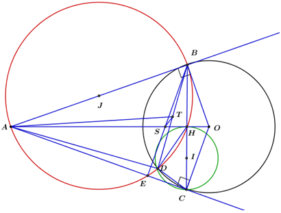 1) Từ A ngoài (O) vẽ 2 tiếp tuyến AB, AC (B,C là tiếp điểm) . AO cắt BC tại H. Đường tròn