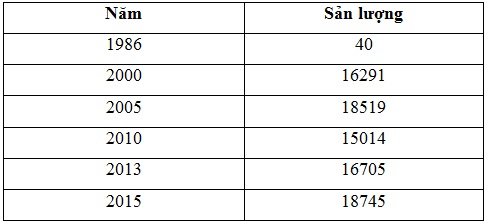 Cho bảng số liệu: Sản lượng dầu thô khai thác của nước ta qua các năm (Đơn vị: nghìn